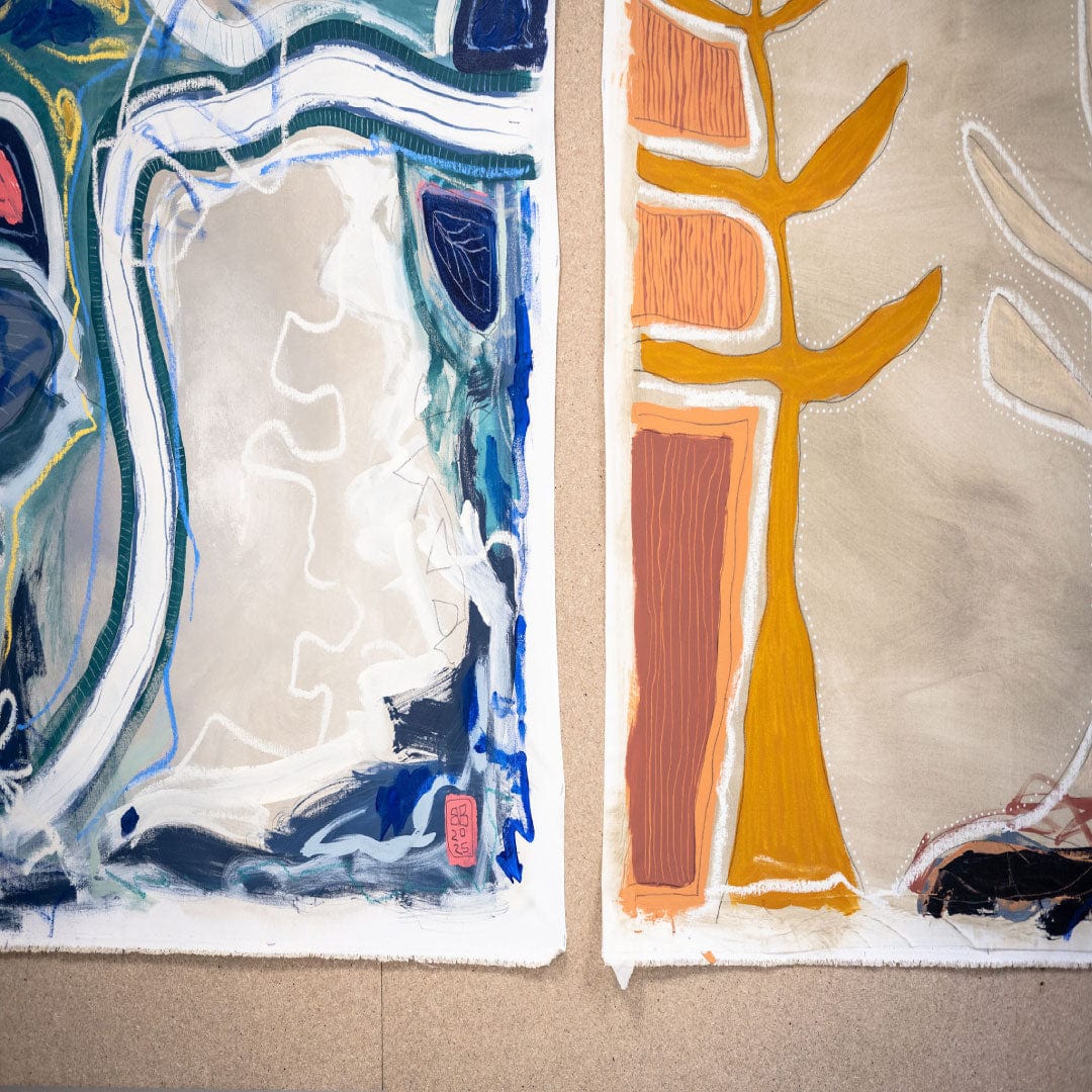 Bianca explores the balance between structure and spontaneity—blending clean lines with expressive colour, texture, and playful pattern. Her process is rooted in curiosity, often beginning with research into culturally inspired symbols and palettes.