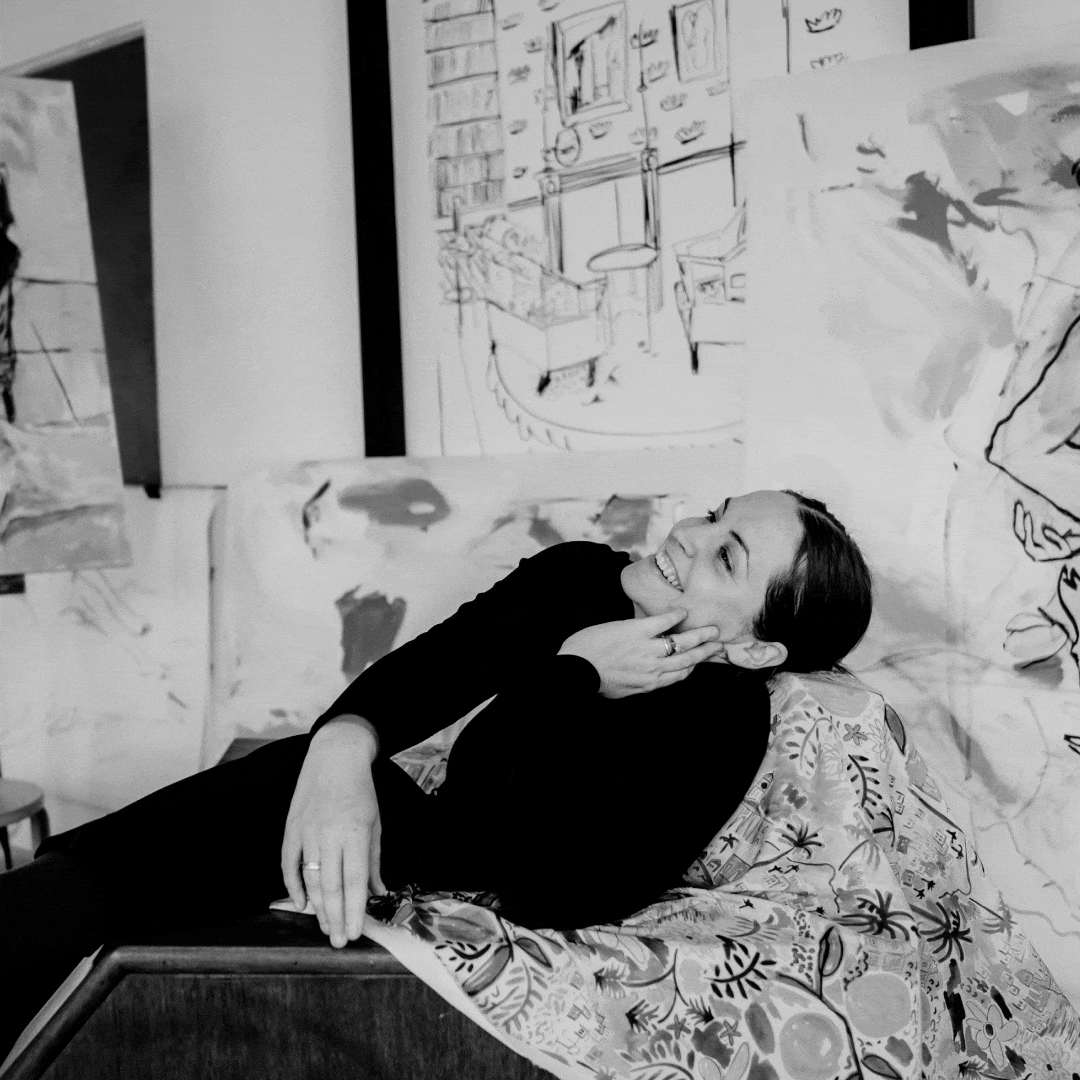 Raised between the Boland and the Karoo, her work draws on the textures and tones of rural South Africa, brought to life through gouache, watercolour, and paper. She studied Fine Arts and refined her practice under Scottish artist Elsie Evans, who instilled in her a love for constant sketching — and the boldness to “just get on with it.”