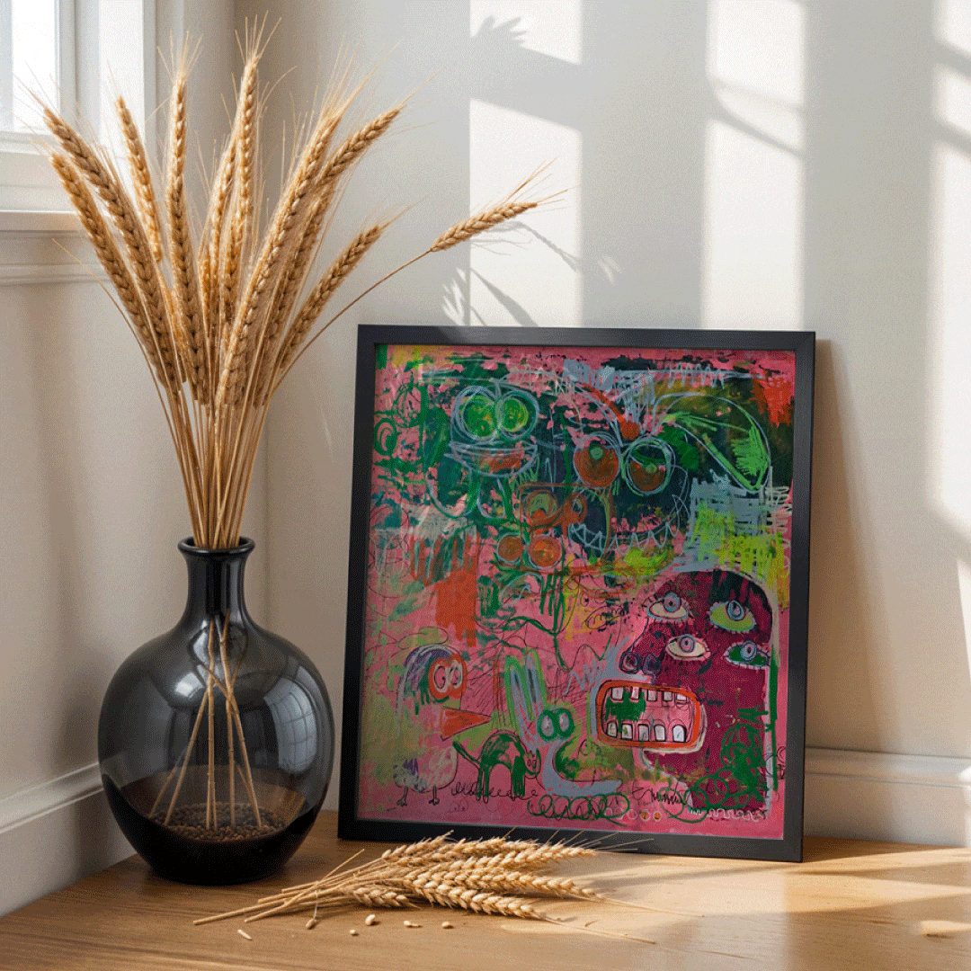 Julie Kirsten is a self-taught South African abstract artist whose vibrant, playful works celebrate colour, texture, and the nostalgic essence of childhood memories. After decades in the high-pressure corporate world, she turned to painting as a creative release—a way to process stress and rediscover freedom and joy.