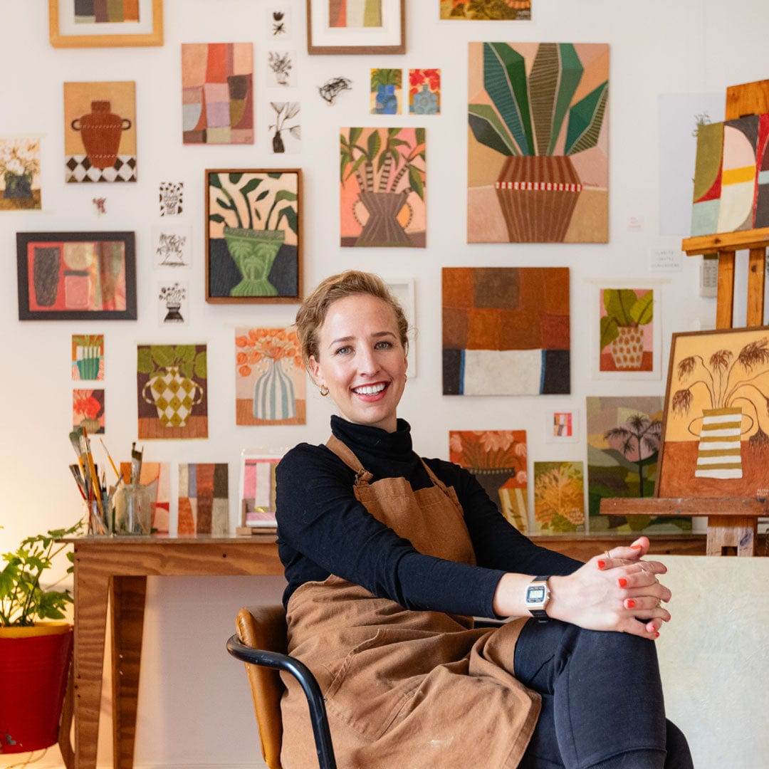 Petronella is a Cape Town–based artist whose bold, expressive paintings transform everyday moments into vibrant works of art. Blending realism with abstraction, her signature style features lush plants, flower pots, and organic forms—brought to life in rich acrylics and oils with striking colour and texture.
